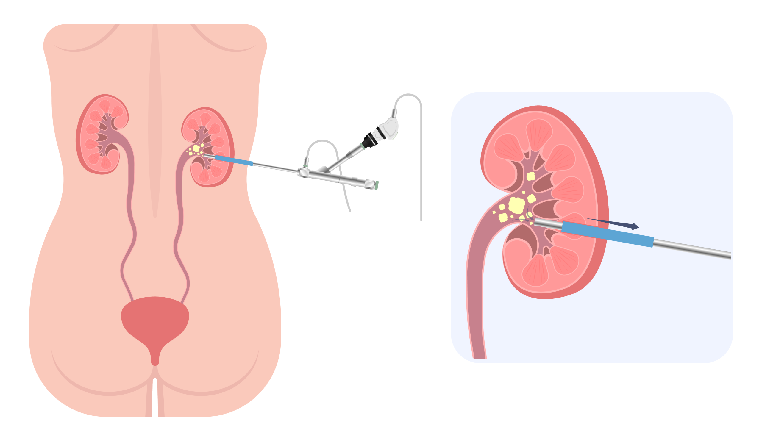 Quando os cálculos renais não podem ser tratados por outros procedimentos – seja porque há muitos cálculos, os cálculos são muito grandes ou duros, ou por causa da sua localização – a nefrolitotomia percutânea é considerada. Neste procedimento, um tubo é inserido diretamente no rim através de uma pequena incisão feita nas costas. As pedras são, então, desintegradas por uma sonda de ultrassom e extraídas por meio de uma sucção especial, reduzindo a eliminação de fragmentos pela urina. Um Duplo J é colocado após o procedimento para manter o ureter aberto e removido entre sete e 30 dias após a cirurgia, a depender do quadro clínico do paciente e da avaliação do médico. Apenas 0,3% a 0,7% dos casos requerem cirurgia aberta.